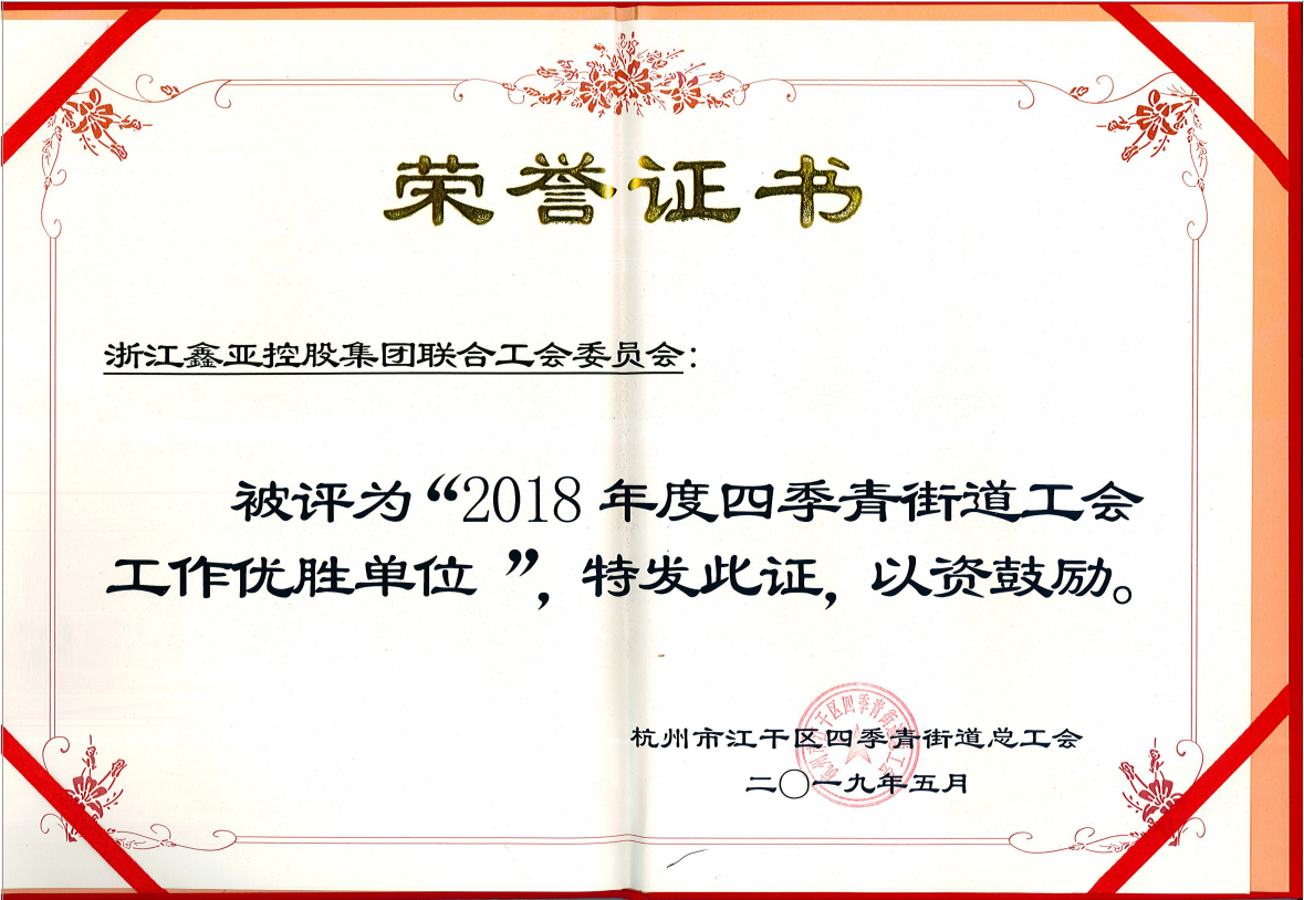 集团联合工会会员会被评为“2018年度四季青街道工会工作优胜单位”